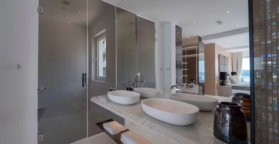 5 bedrooms with double sized beds, shower and toilets and each with an unique see or mountain view.